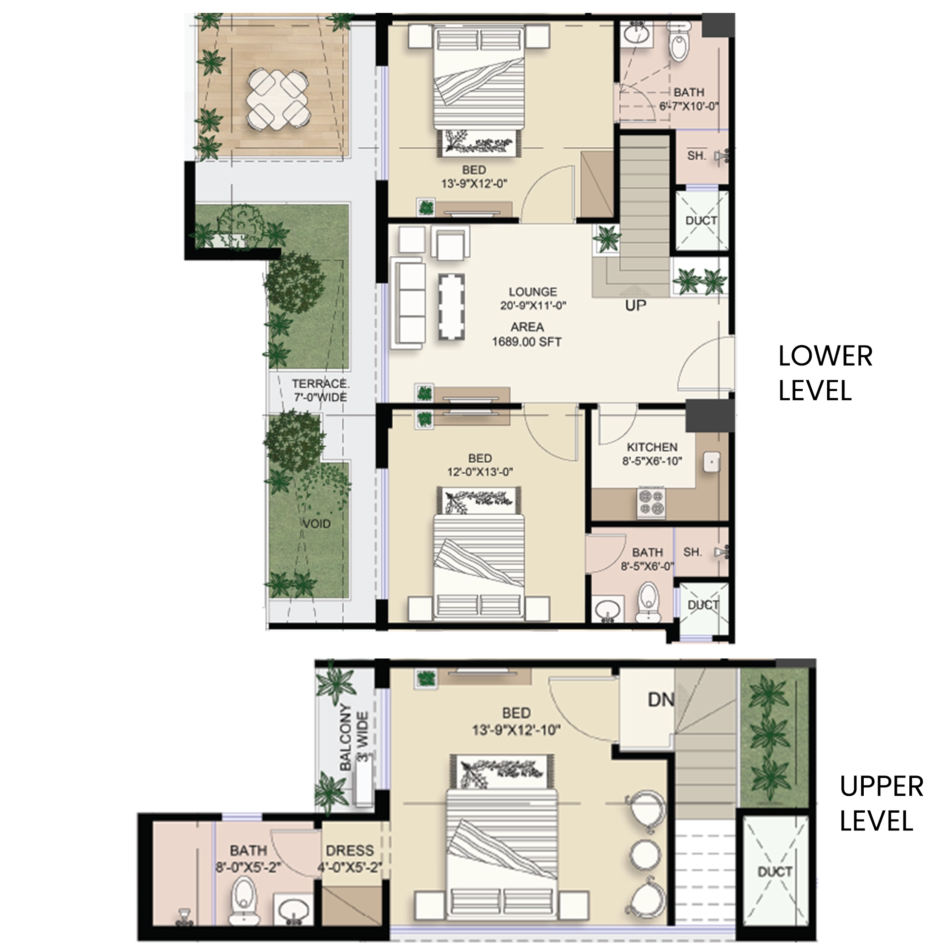 Total Area 1689 Sq.ft · 15% Down Payment