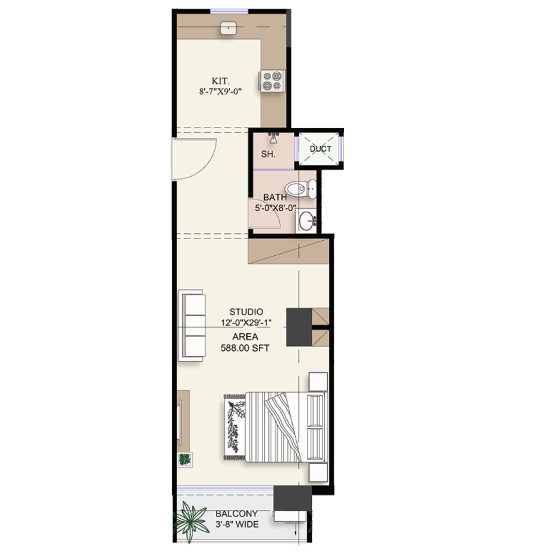 Total Area 588 Sq.ft · 15% Down Payment