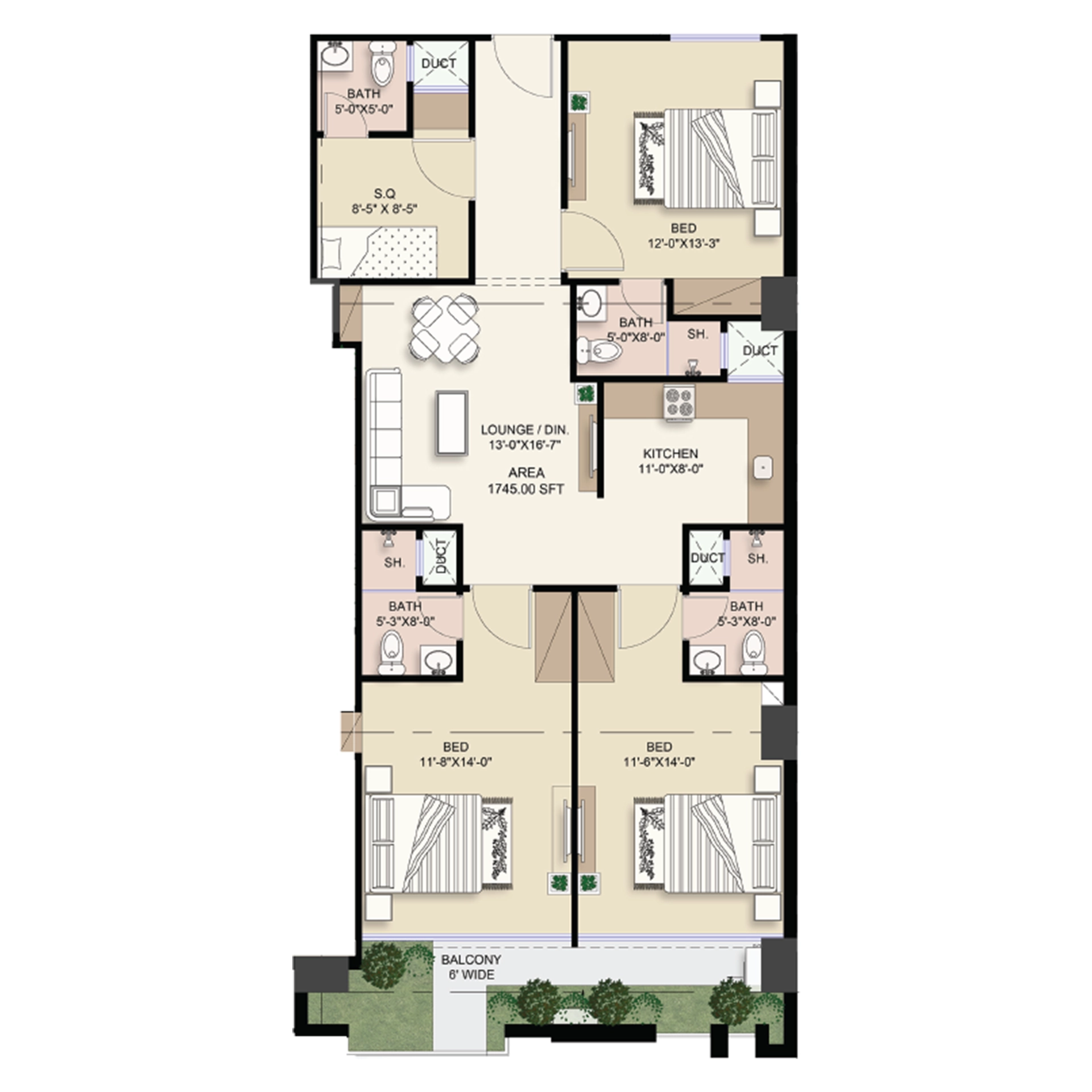 Total Area 1745 Sq.ft · 15% Down Payment